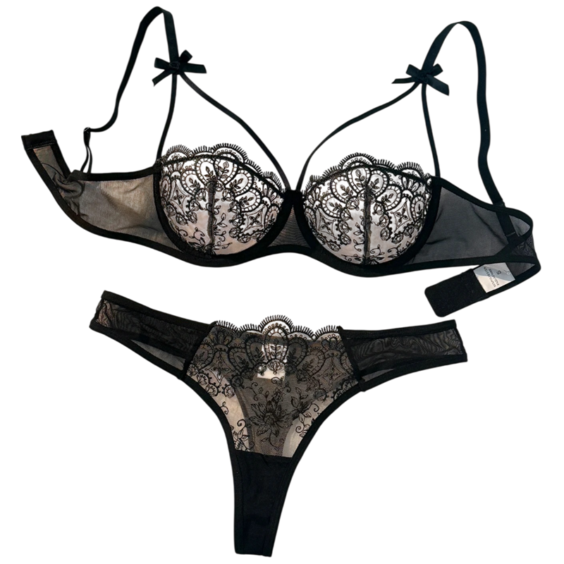 Home page Home page Clothing & Accessories Women’s Clothing Women’s Underwear Women’s Lingerie Sets Ladies' Lace Set Bra and Briefs with Embroidery and Fine Mesh Elastane Polyester for Everyday Wear