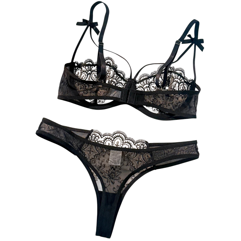 The lace set with embroidery and lightweight mesh offers comfort and style for everyday wear as lingerie. Full description
