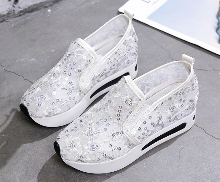 Ladies' Lace Trainers with Sequins J1118