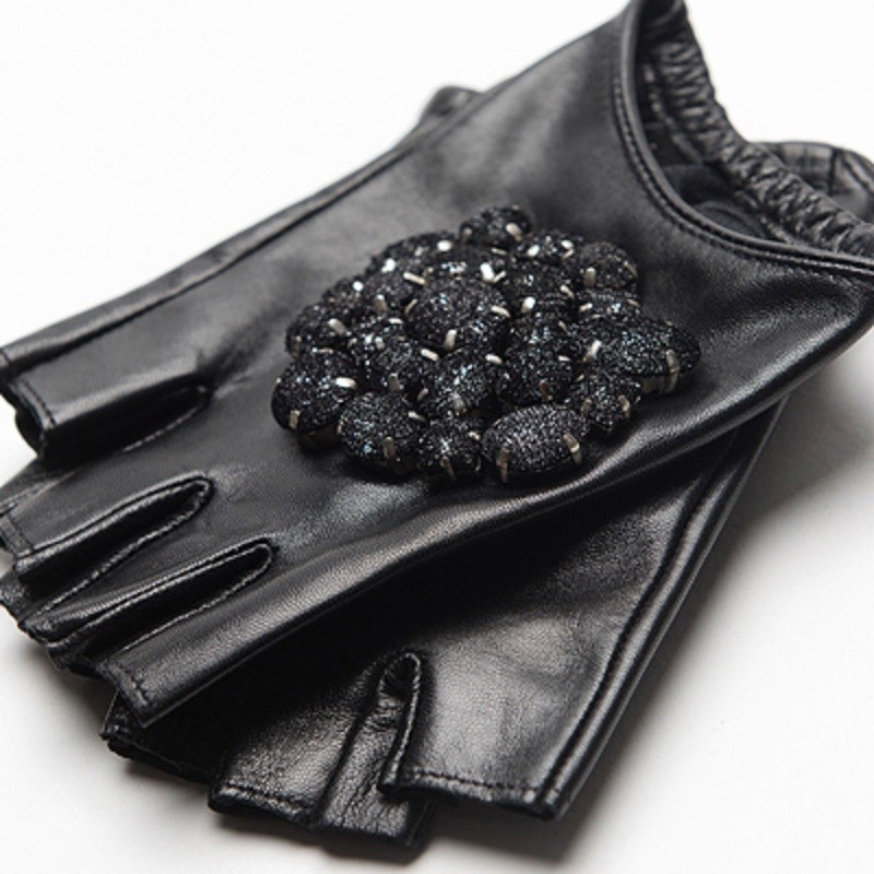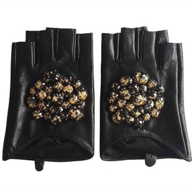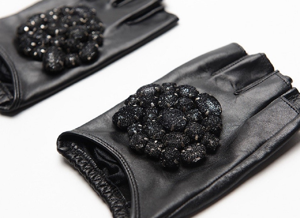 Ladies' Leather Gloves with Rhinestones