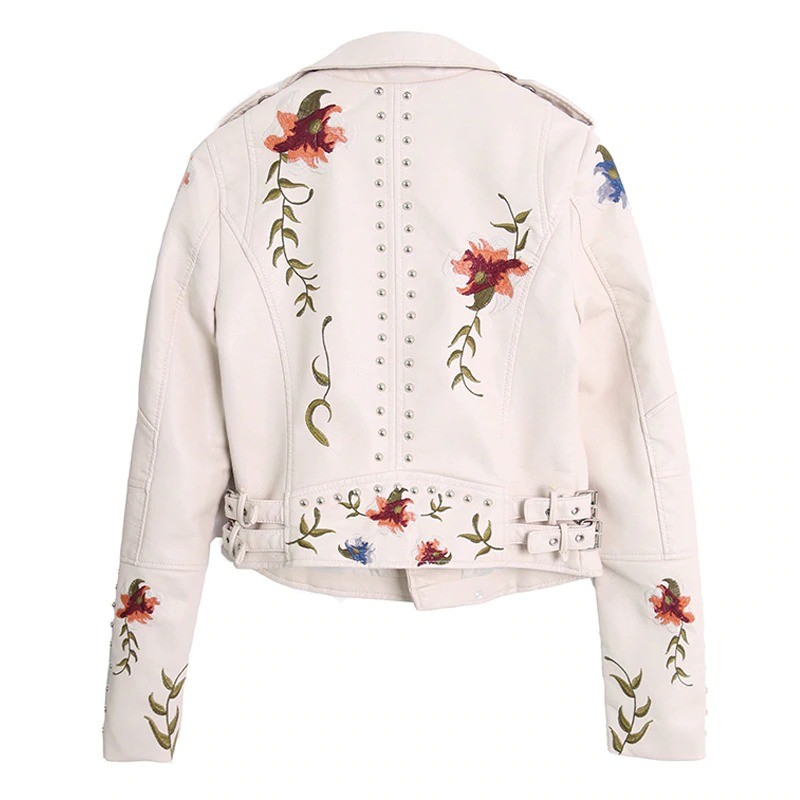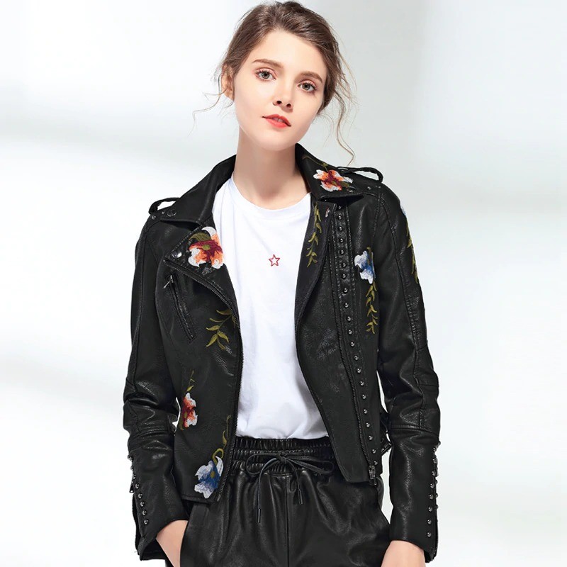 Ladies' Leather Jacket with Flowers