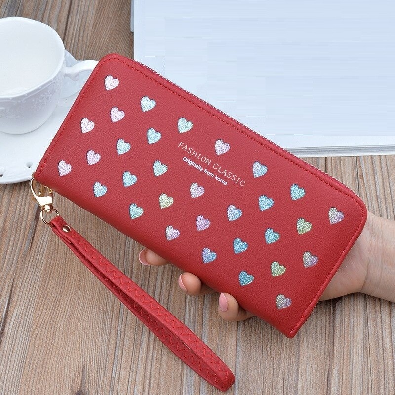Ladies' Leather Wallet with Hearts
