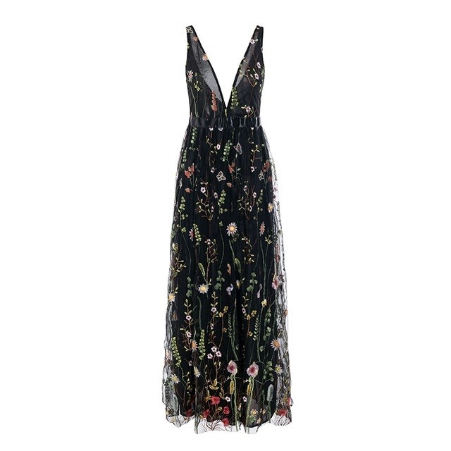 Long dress with romantic floral embroidery.
