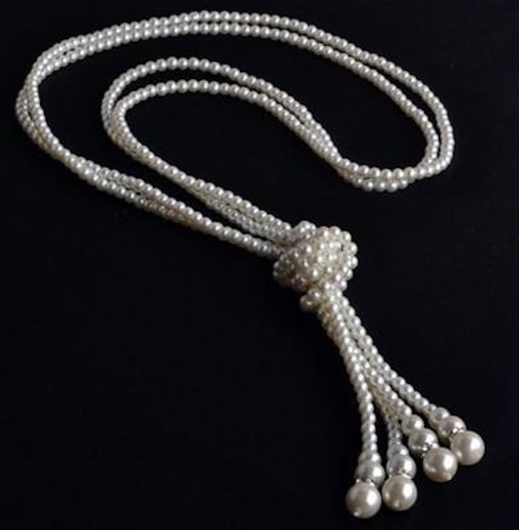 Ladies' Long Pearl Necklace with Knot