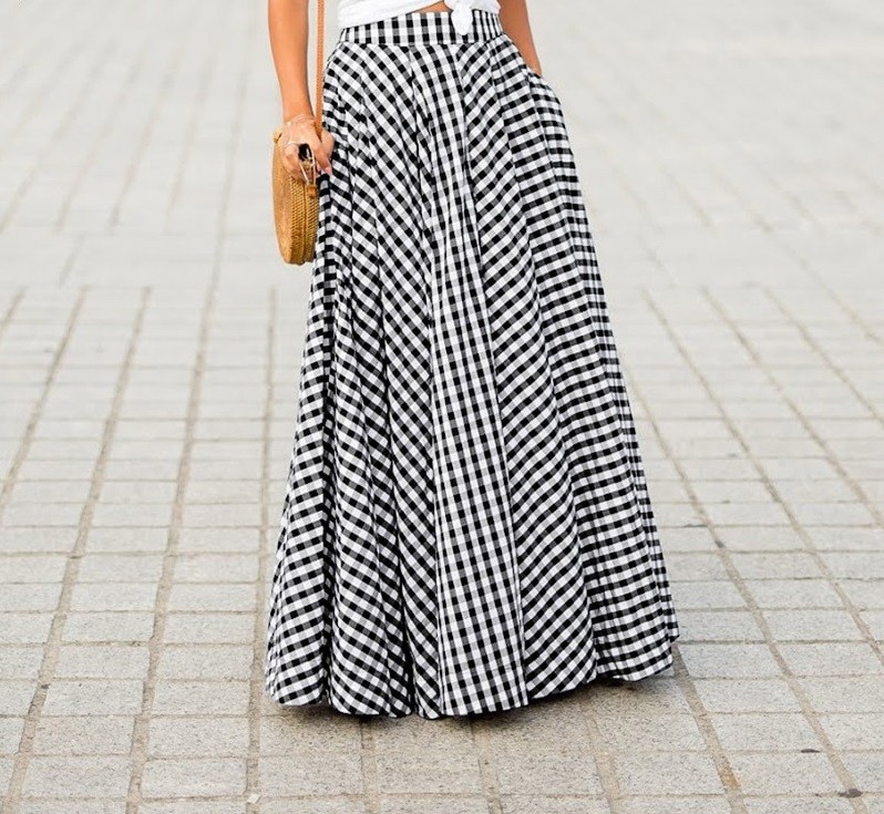 Ladies' Long Skirt with Check Pattern