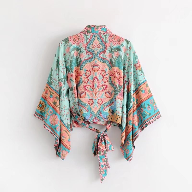 A blouse with a beautiful cut. It has longer loose sleeves.