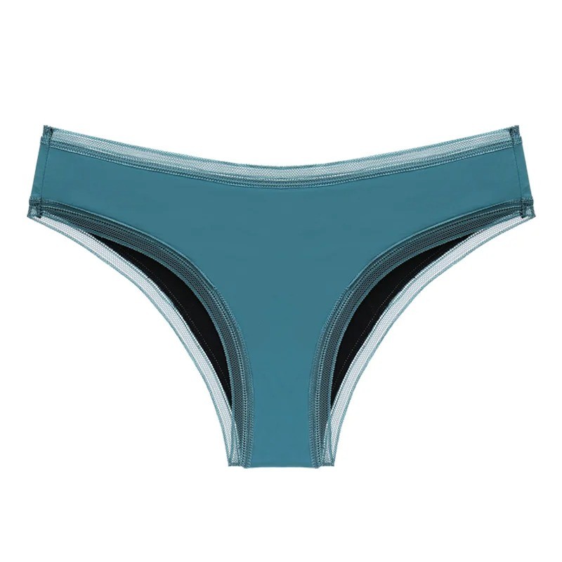 Ladies' menstrual underwear with a four-layer absorbent construction made from bamboo fibre and elastane, designed for everyday wear. Full description