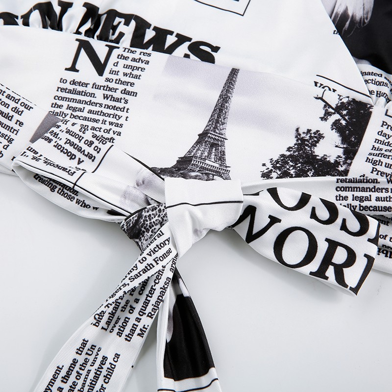 Ladies' Newspaper Print Crop Top