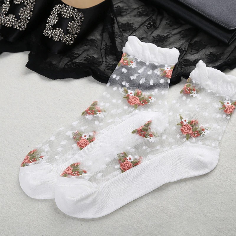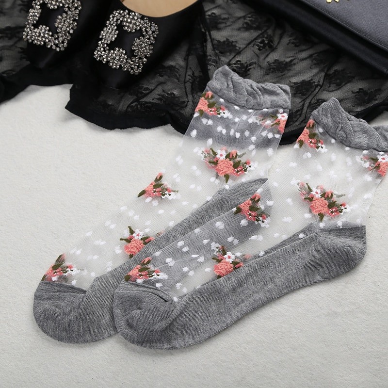 Nylon socks adorned with flowers are a hot trend!