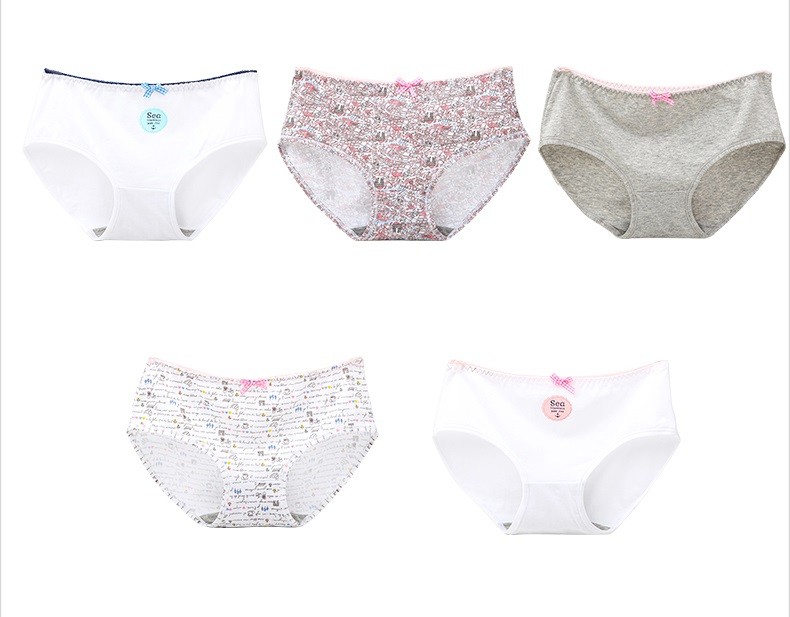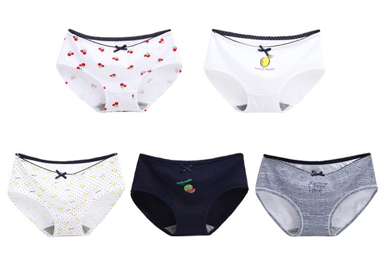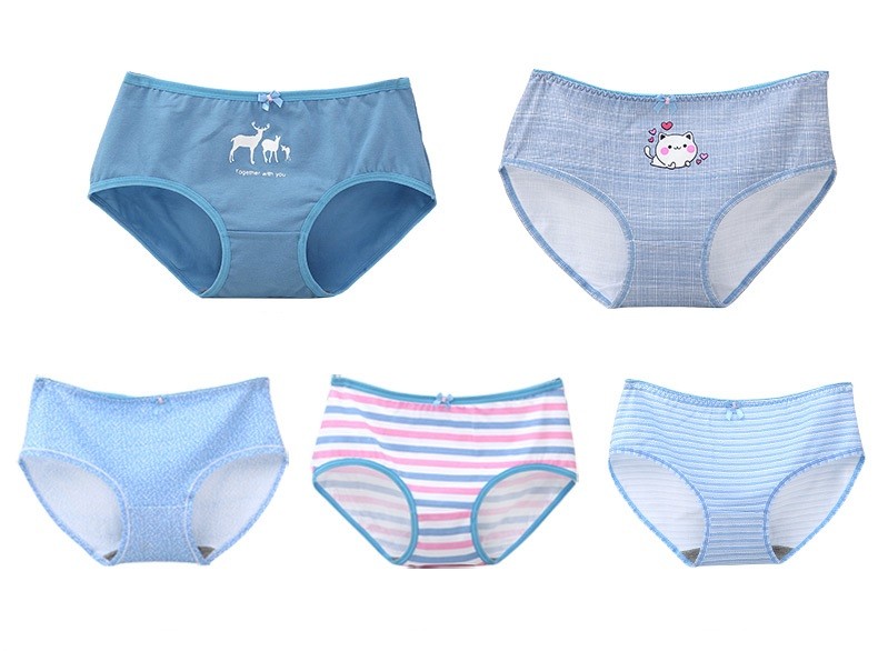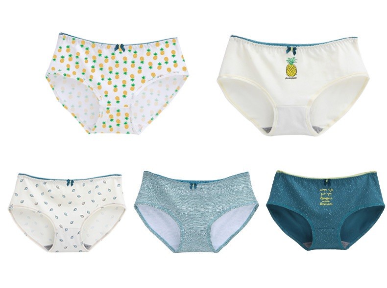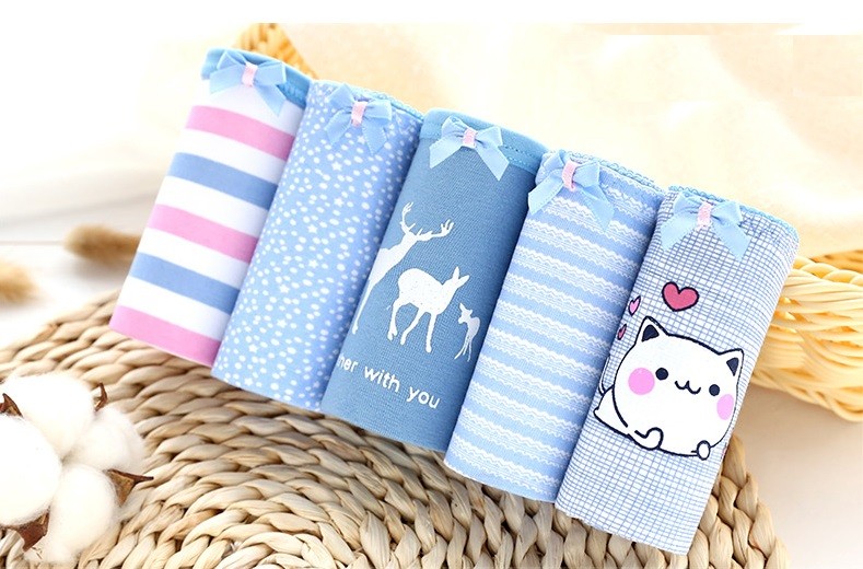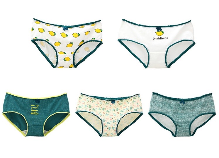 The panties feature various patterns, motifs, images, or words.