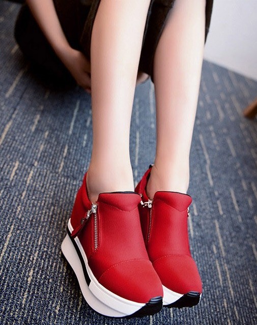 Every woman will love these platform ankle boots. The trainers fasten with a zip.