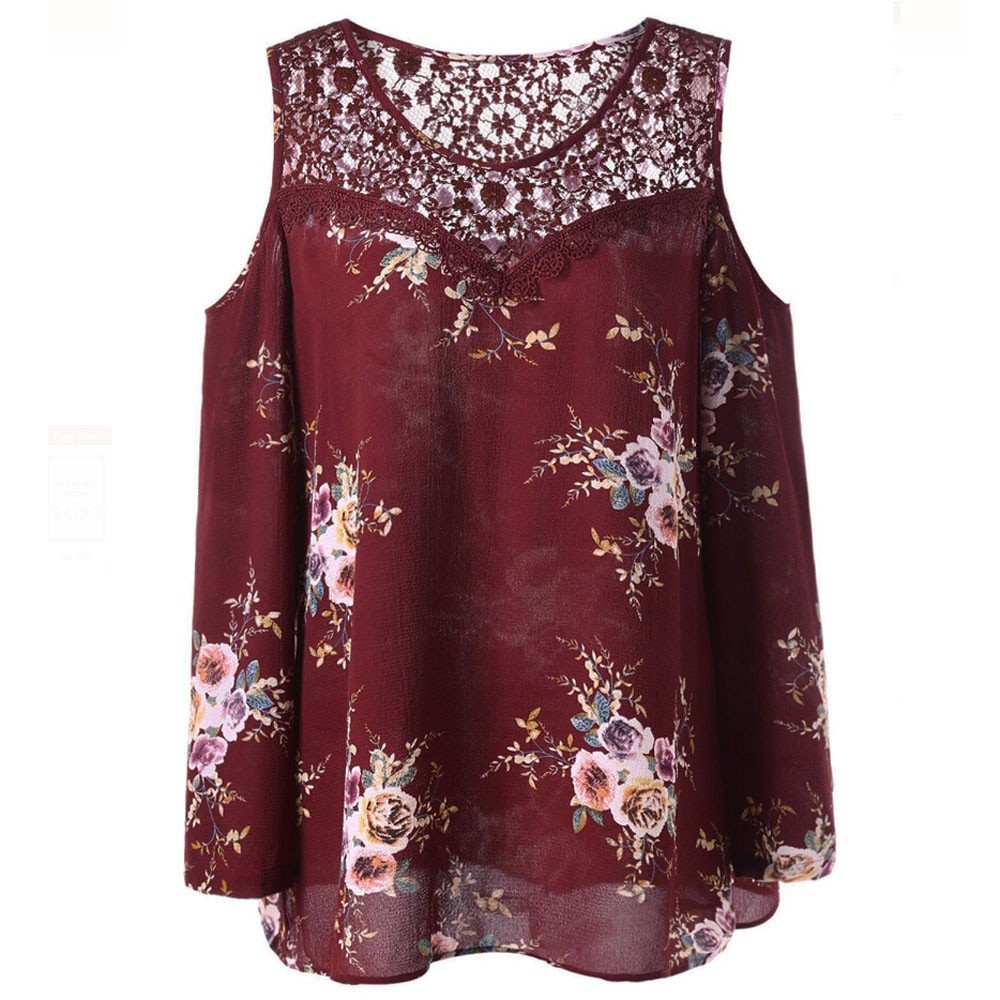 It features long sleeves and exposed shoulders.