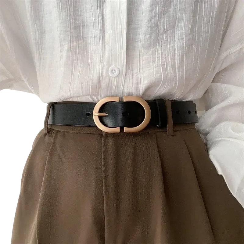 Stylish ladies' belt with a classic buckle perfectly complements any outfit. Suitable for trousers, skirts, and dresses. Practical, elegant, and versatile. Full description