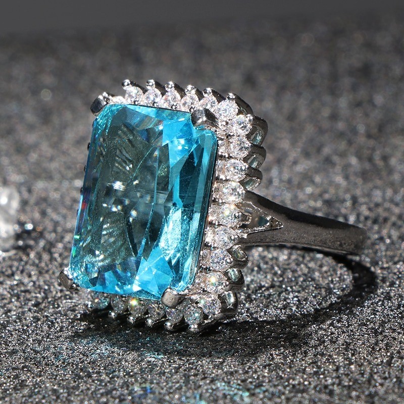 Material: costume jewellery metal, zirconia, imitation aquamarine