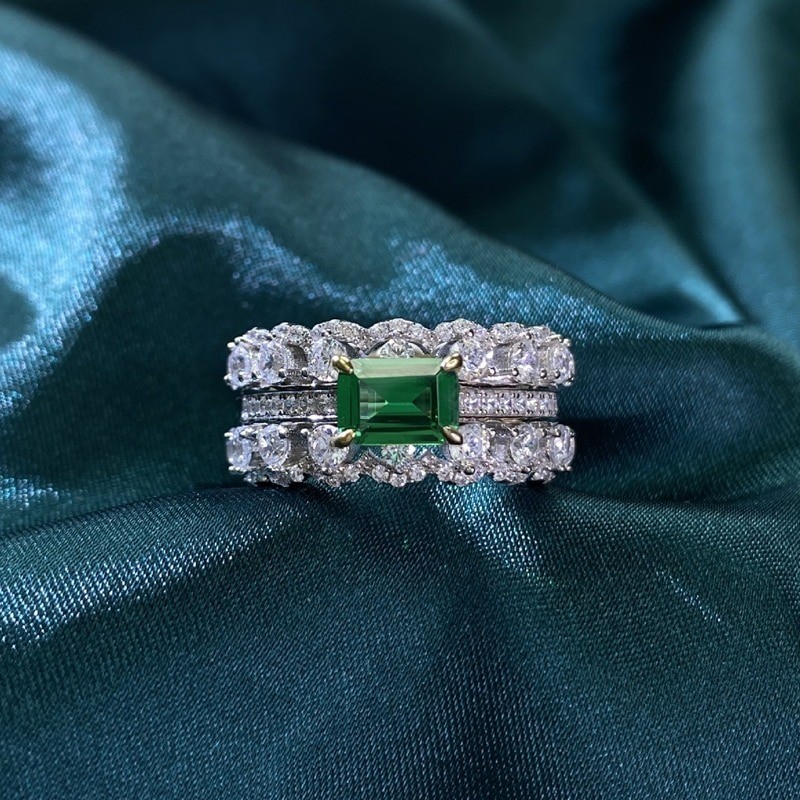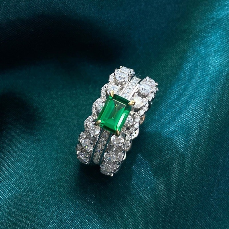 Material: costume jewellery metal, imitation emerald, imitation diamond