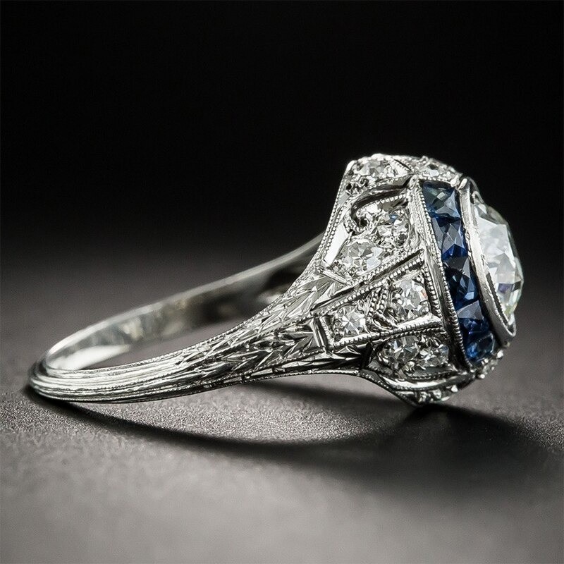 Material: costume jewellery metal, sapphire imitation, zircon