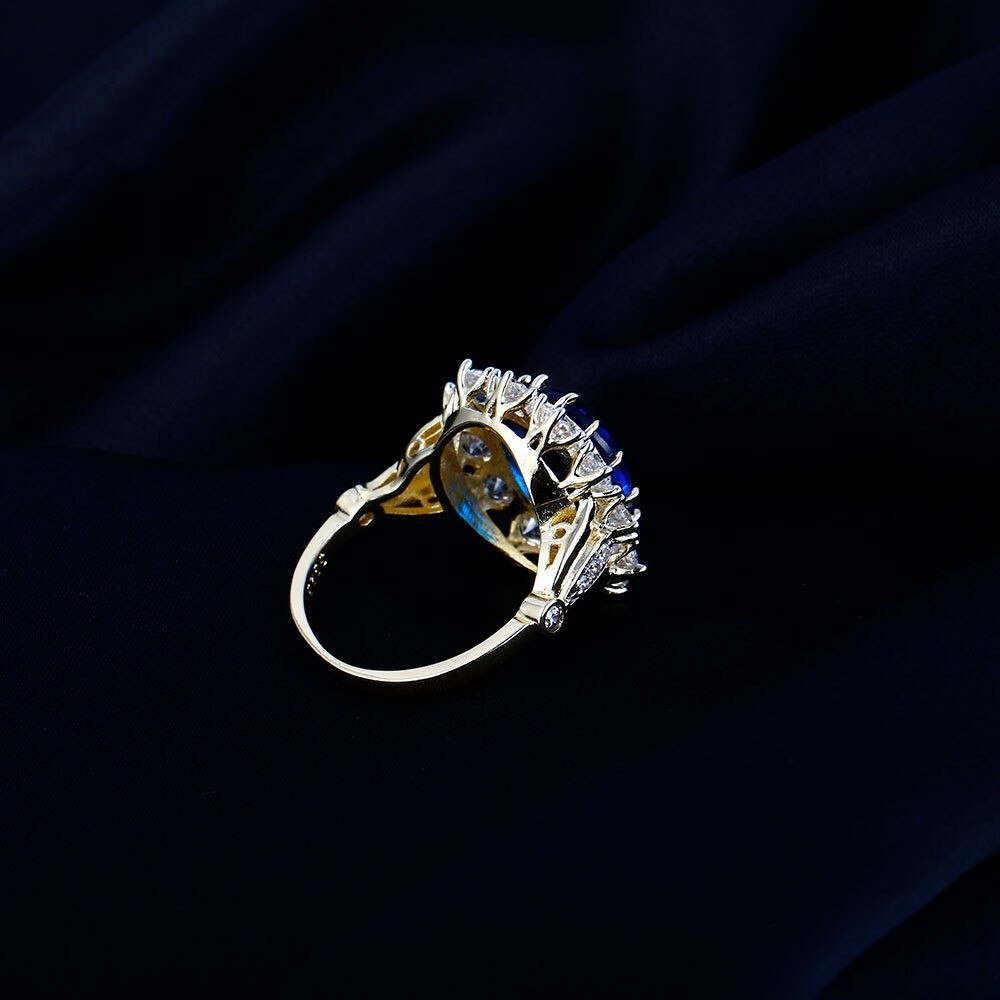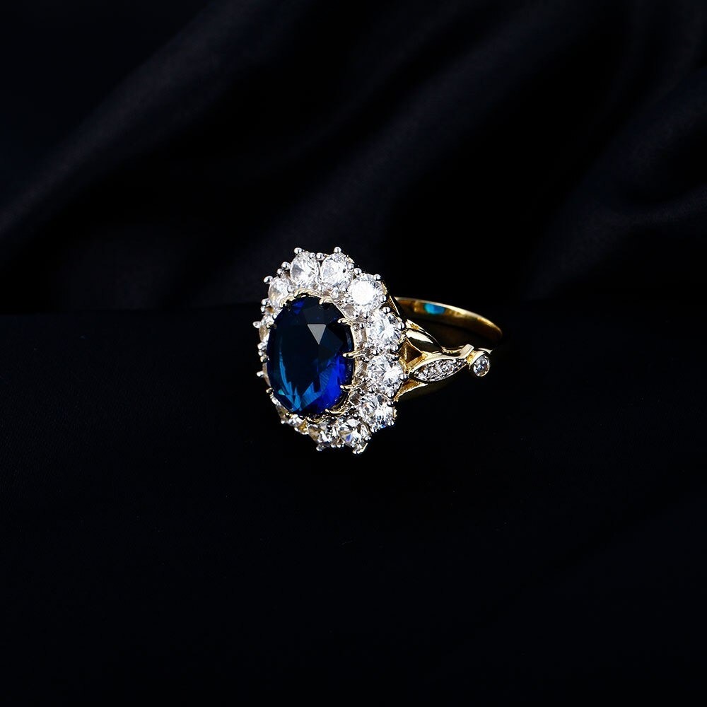 Material: costume jewellery metal, zirconia, imitation aquamarine, imitation sapphire
