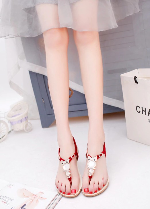You will love these elegant sandals with an owl. The sandals are of the flip-flop style.