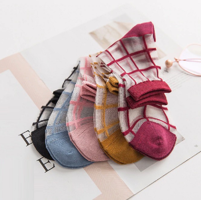 Ladies' Sheer Checked Socks A1052