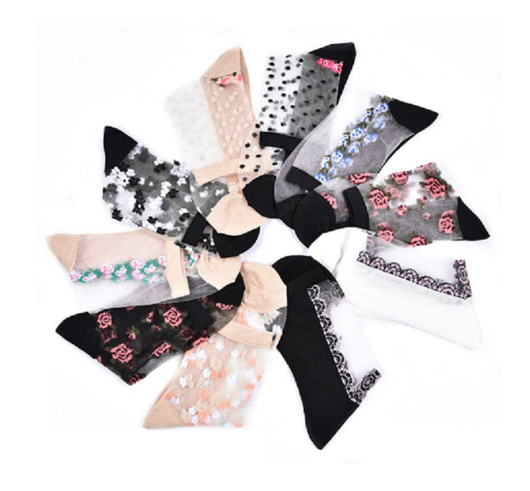 Ladies' Sheer Socks with Flowers - 10 Pairs