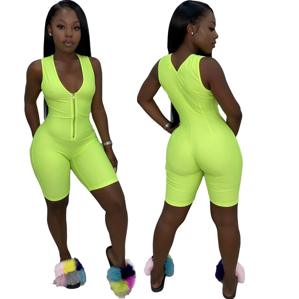 Ladies' Short Fitted Jumpsuit with Zip
