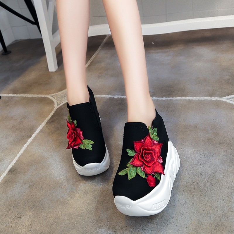 You will love these high-soled sneakers with a floral print.