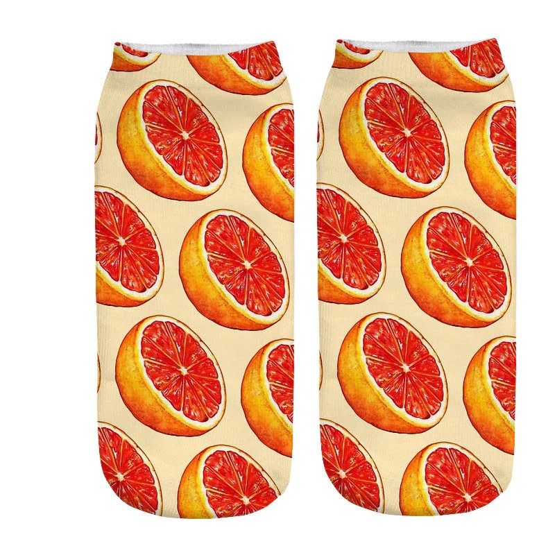 The socks feature prints of various fruits from all corners of the world.