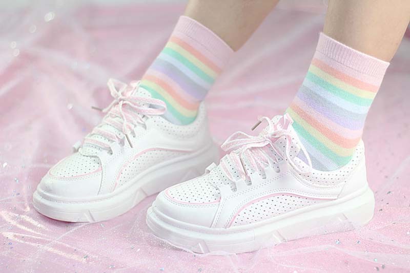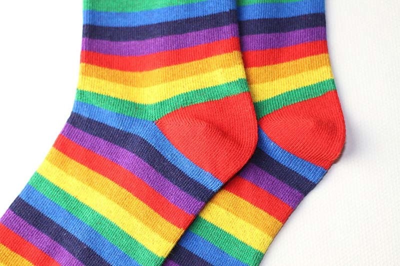 Socks with colourful stripes are very extravagant and cool!