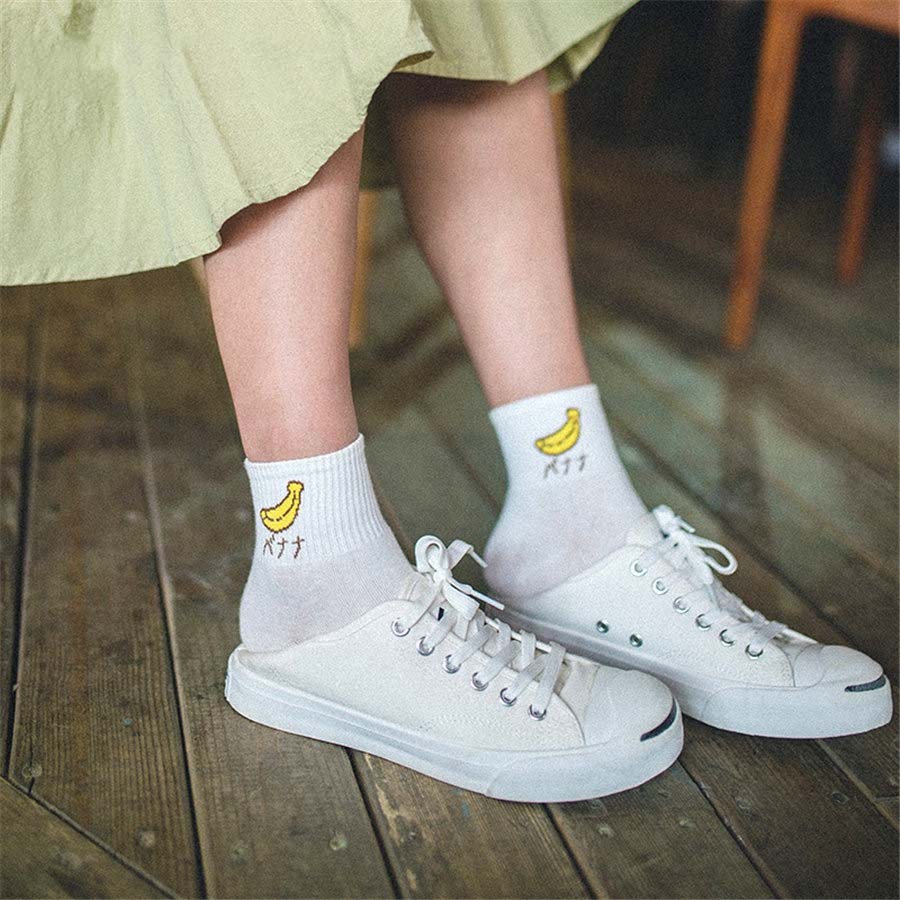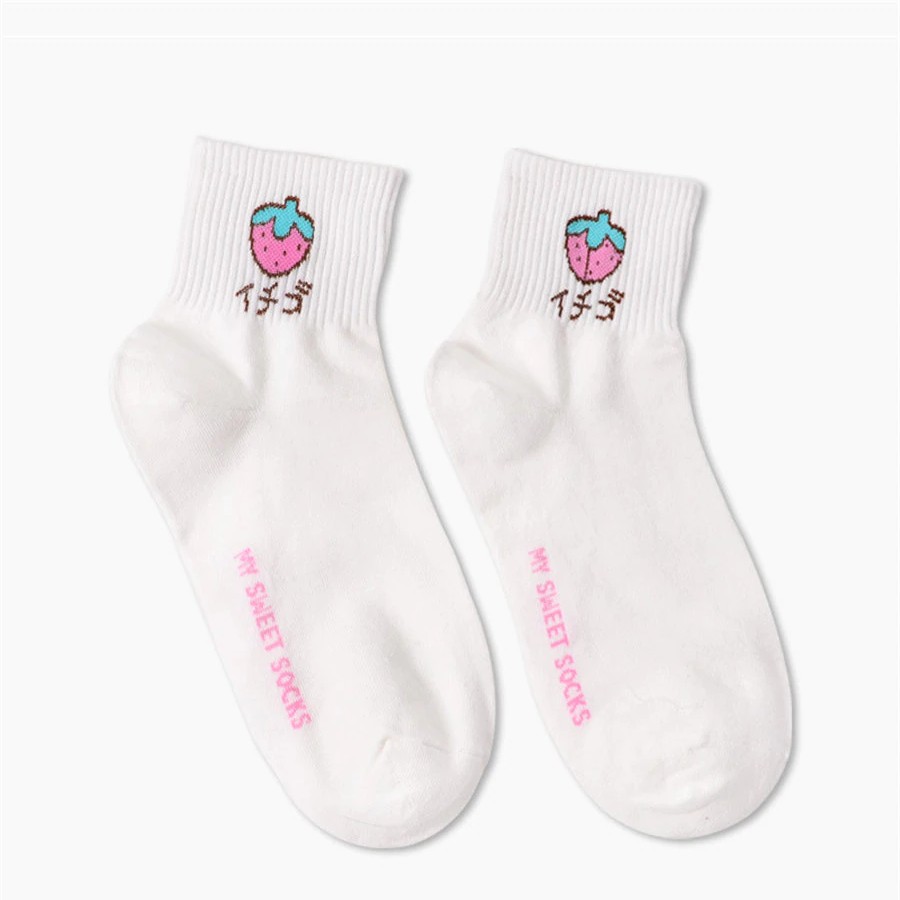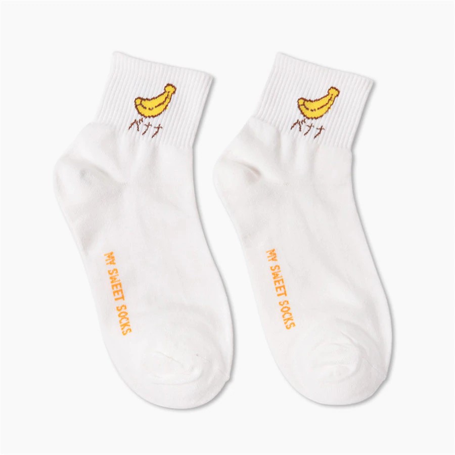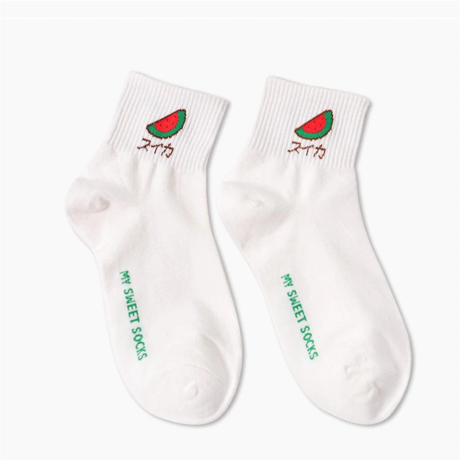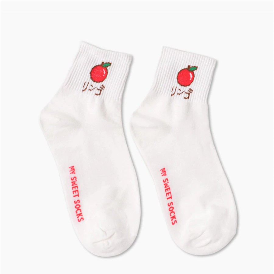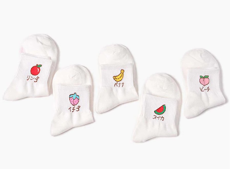 Socks with embroidered fruit are very comfortable.