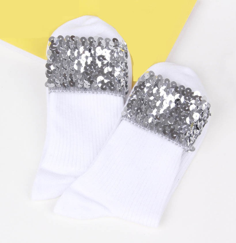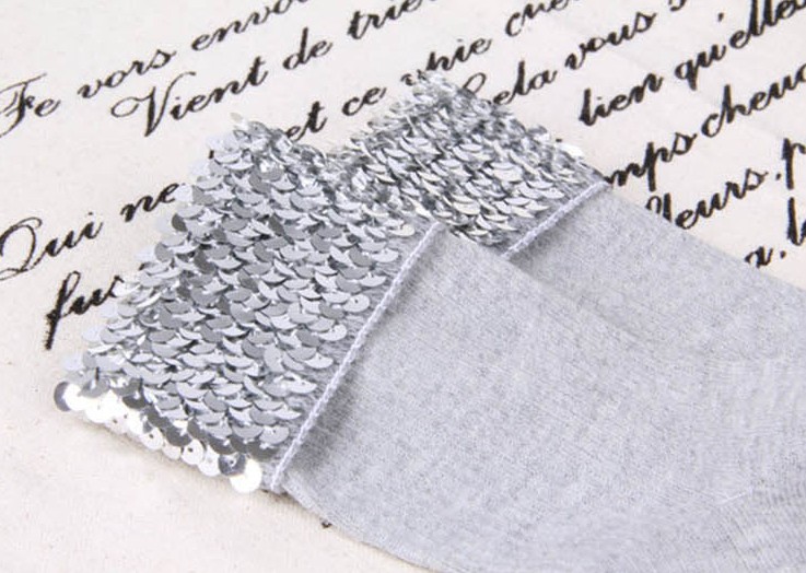 The socks are adorned with sequins at the top. The sequins on the socks beautifully stand out in trainers!