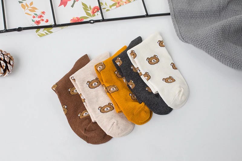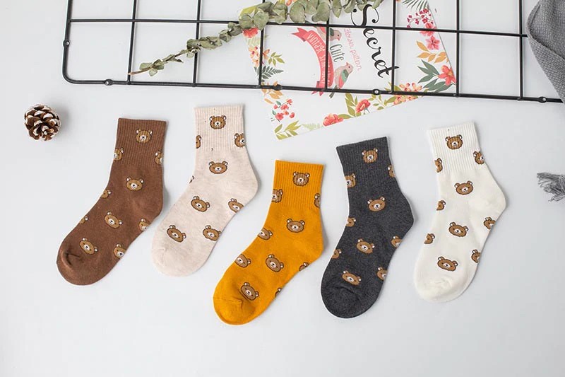 The socks are made from high-quality material. They feature embroidered teddy bear heads.