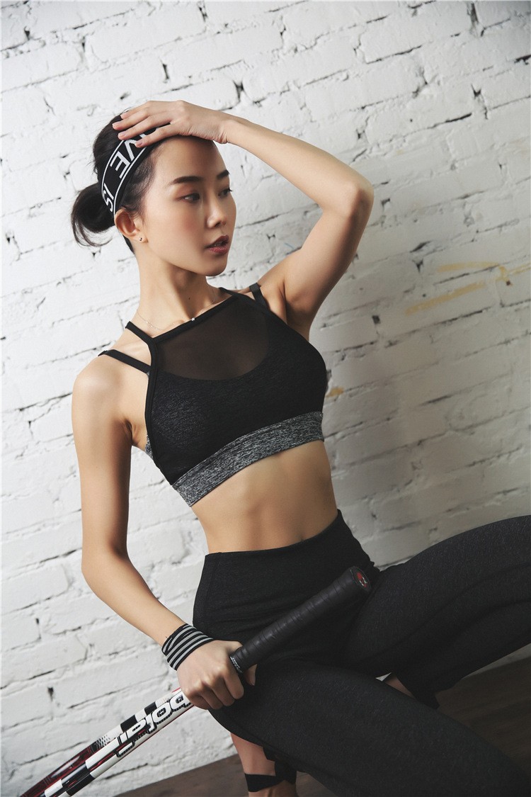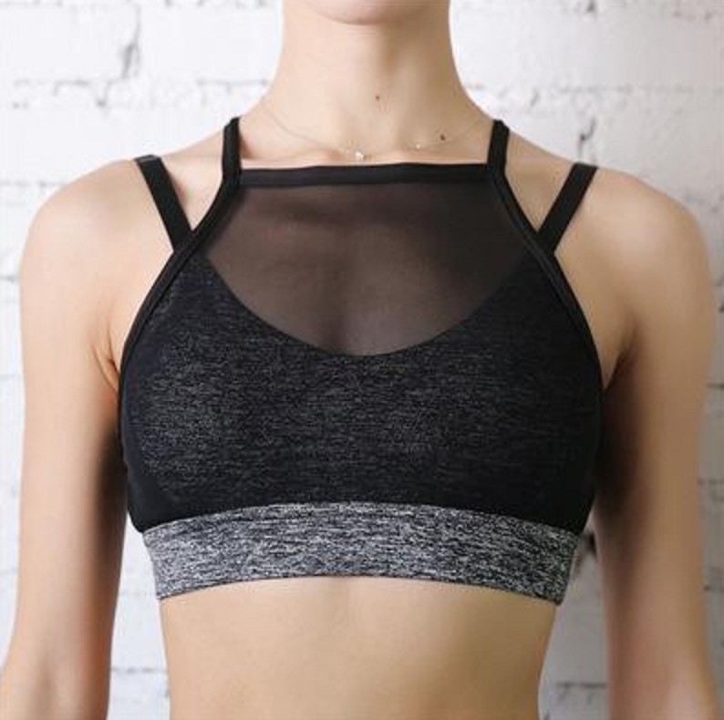 The bra features narrow straps and has mesh across the bust for added comfort.
