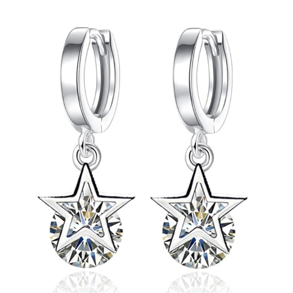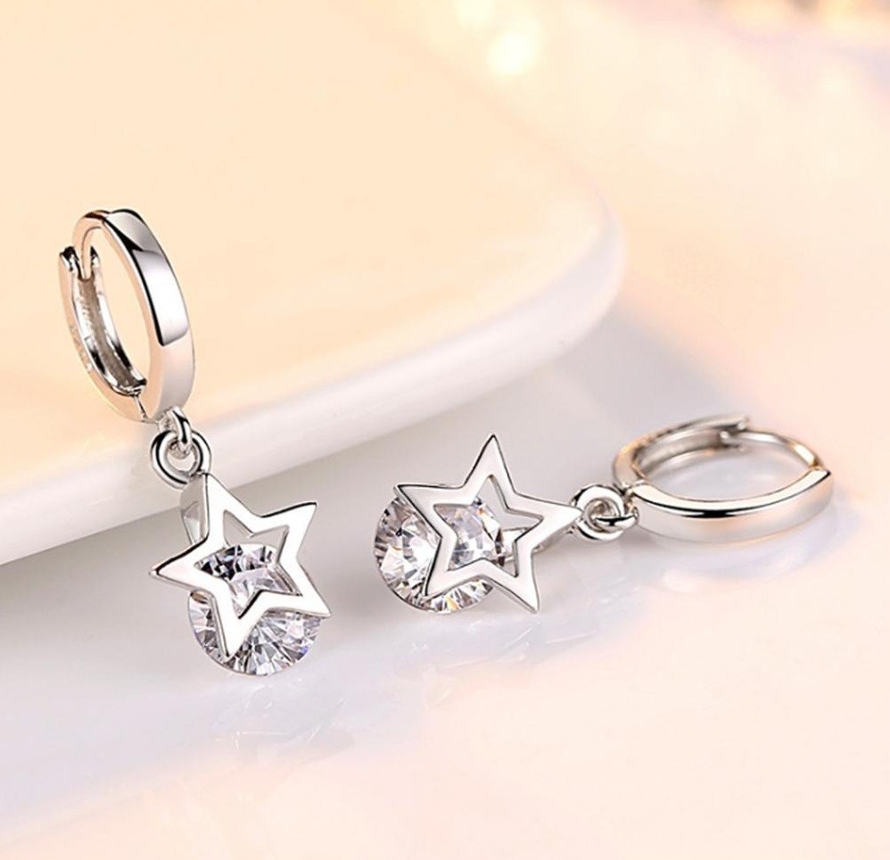 Ladies' Star Hoop Earrings with Gemstone
