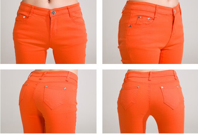 Elegant ladies' jeans in orange.