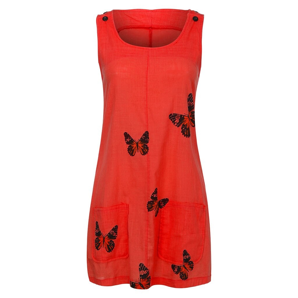Beautiful sleeveless summer dresses featuring a delicate butterfly print.