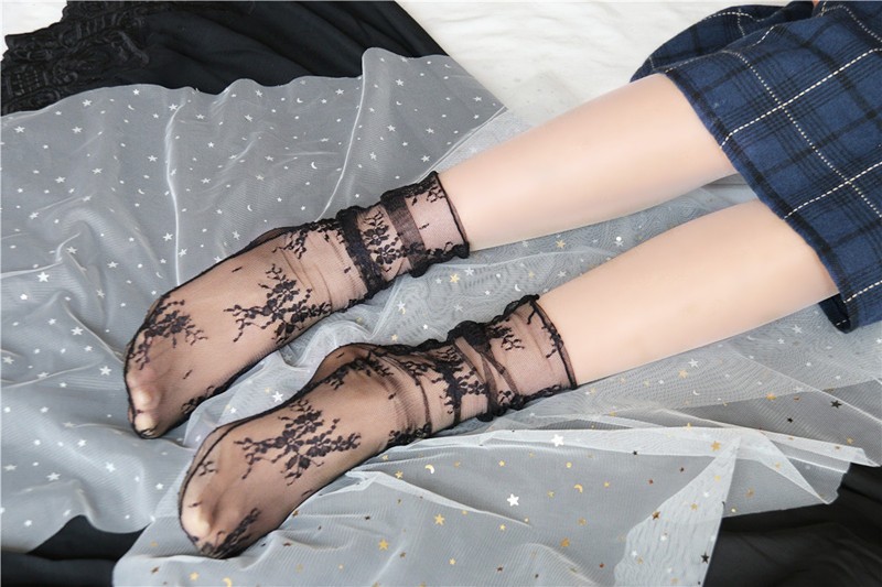 You will love these transparent socks with embroidered flowers.