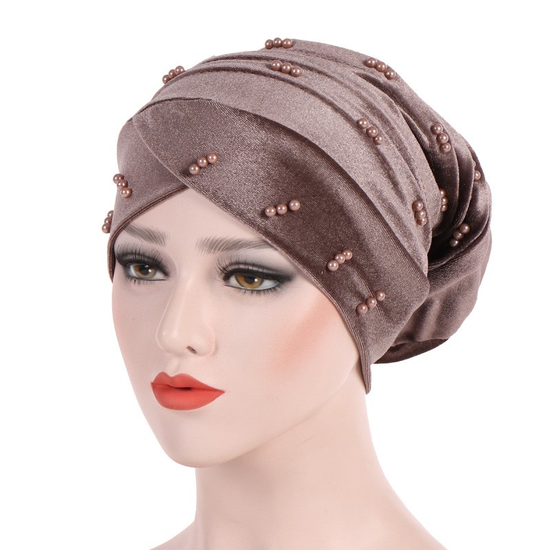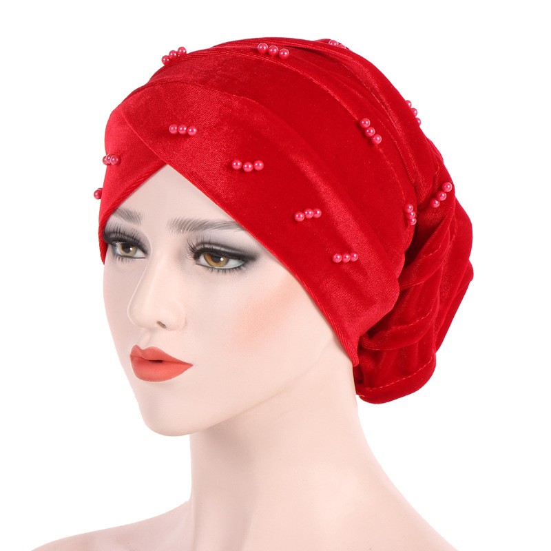 Elegant ladies' turban adorned with pearl beads.