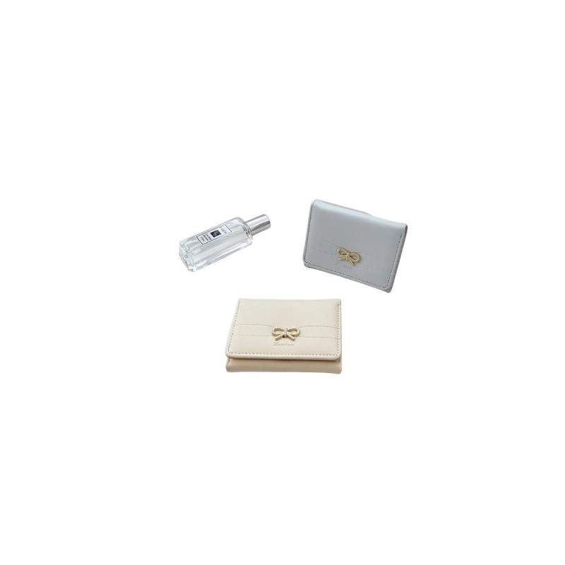 Ladies' Wallet 11 x 8 x 2 cm with Bow Quilted Surface Soft Fine Artificial Leather Compact Elegant Design