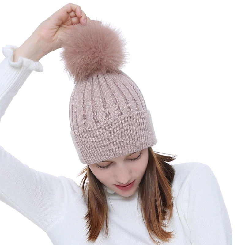 The ladies' winter hat with a detachable pom-pom will be a fantastic addition to your winter outfit.