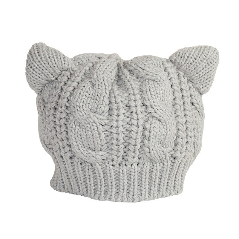 A cute winter chunky knitted hat with cat ears.