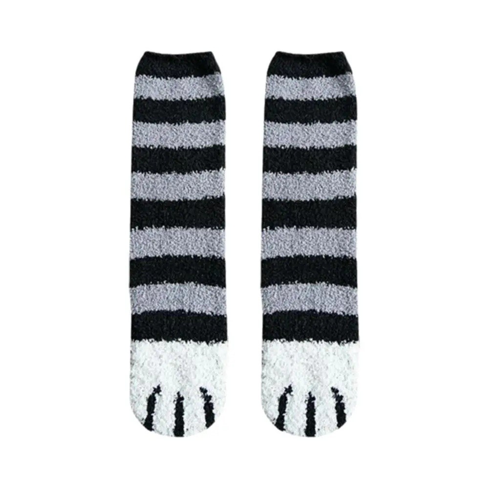 Ladies' Winter Warm Fluffy Striped Socks EU 36-42 Size Soft Warm Cotton Polyester Cat Paw Motif Comfortable Home Socks One Pair