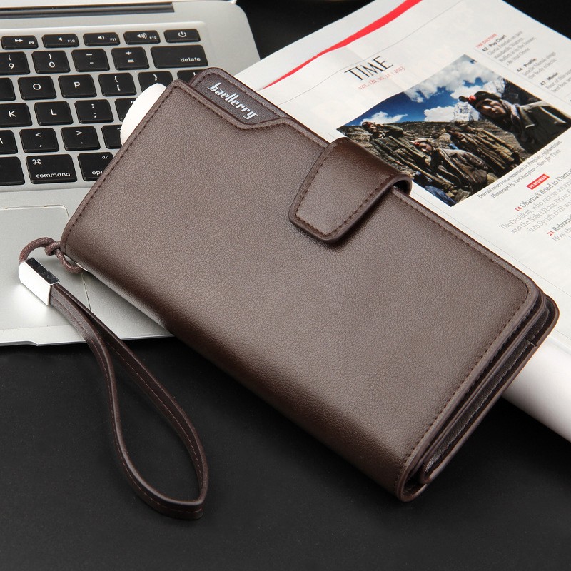 Large Men's Wallet with Strap - Brown