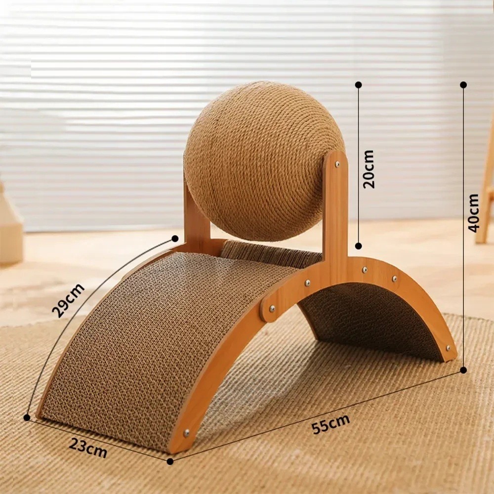 Large Wooden Cat Scratching Post with Curved Board and Sisal Ball 55x23x40 cm Multifunctional Scratching Station Play and Training