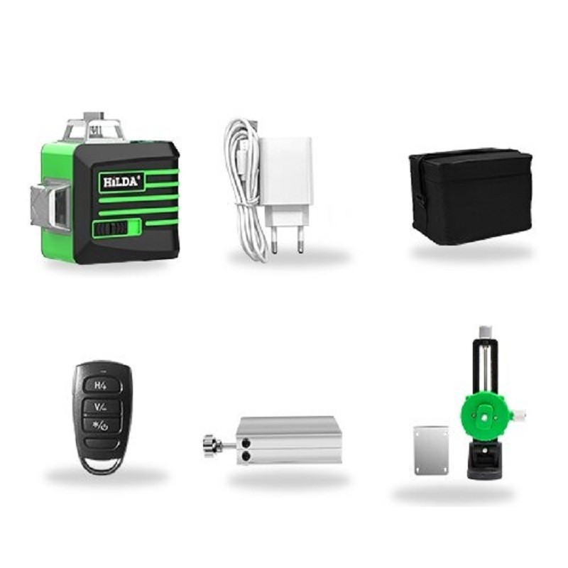 Package contents: 1x laser level, 1x bag, 1x power adapter, 1x wall mount, 1x lifting frame, 1x remote control