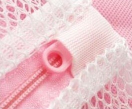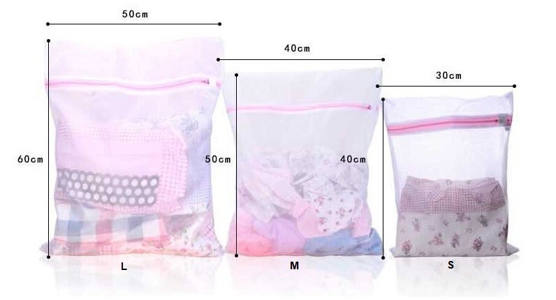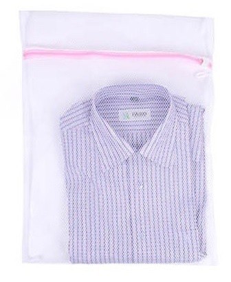 Mesh laundry bag with zip for gentle washing of delicate garments.
