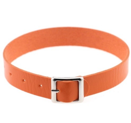 The leather choker with buckle looks great and stylish.