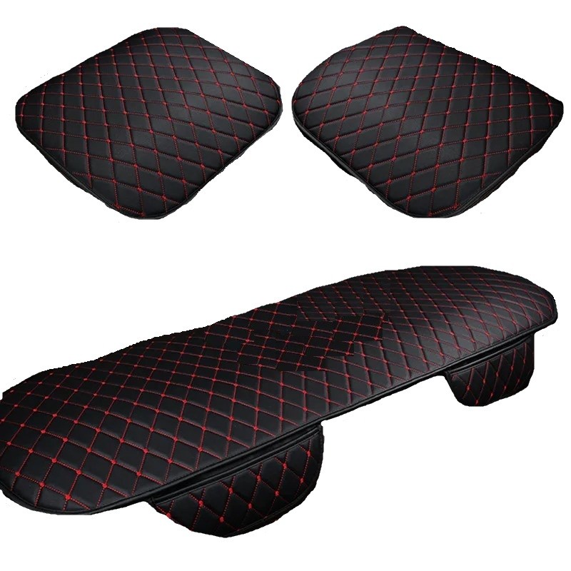 Leather Cover for Front and Rear Car Seats Complete Set of Seat Covers with Red Stitching Leather Car Seat Cushion 3 pcs