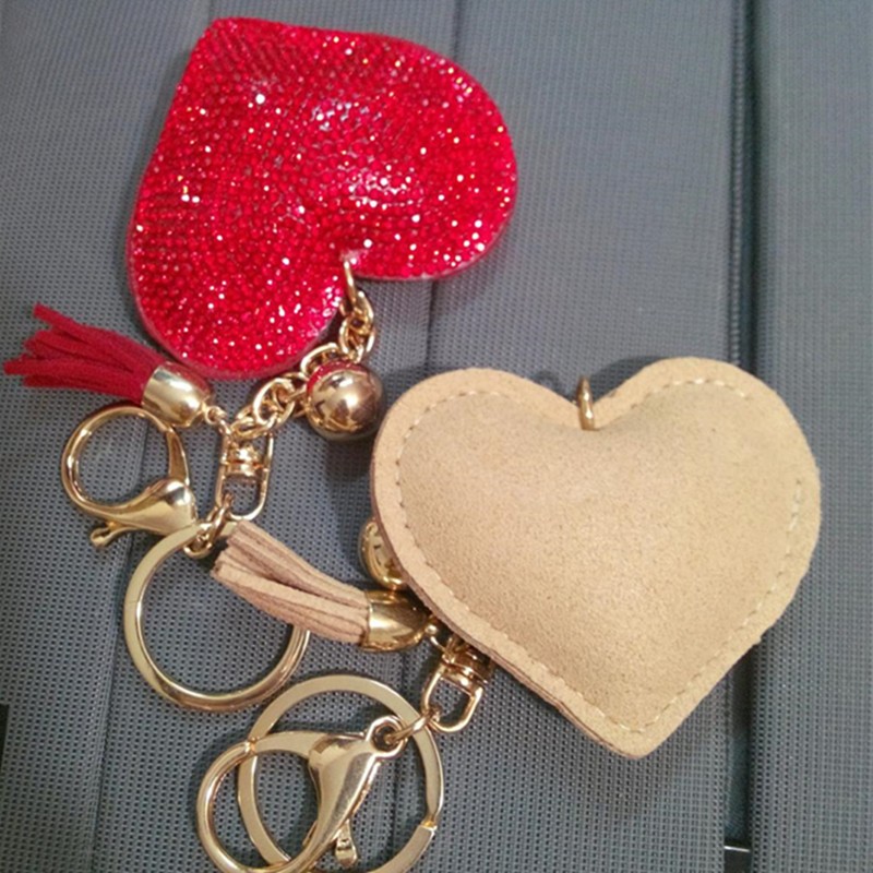 A leather keyring in the shape of a heart adorned with gemstones will delight any woman.
