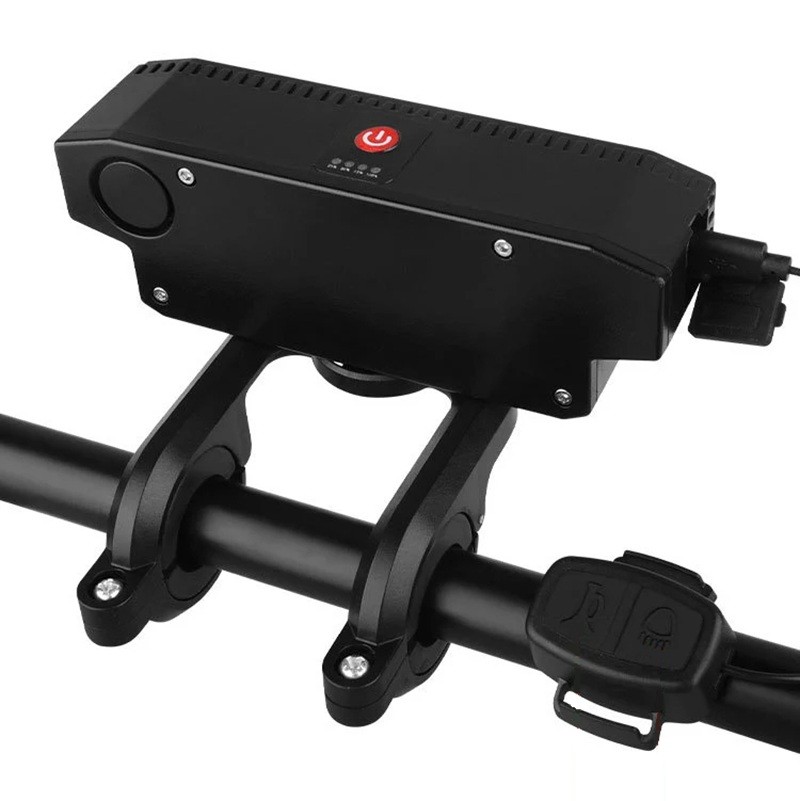 The package also includes a remote control, which allows you to conveniently operate the light and horn without taking your hands off the handlebars. The light can be easily attached to the bicycle handlebars using a universal mount without the need for tools. In addition to lighting, the device also serves as a practical power bank for emergency charging of your phone or other devices.