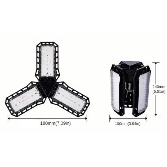 This LED ceiling lamp provides powerful cool white light, which is ideal for garages, workshops, warehouses, or commercial spaces. Thanks to its folding design with three adjustable panels, you can direct the light exactly where you need it. Installation is easy – simply screw it into a standard E27 socket and instantly enjoy bright and even lighting.
